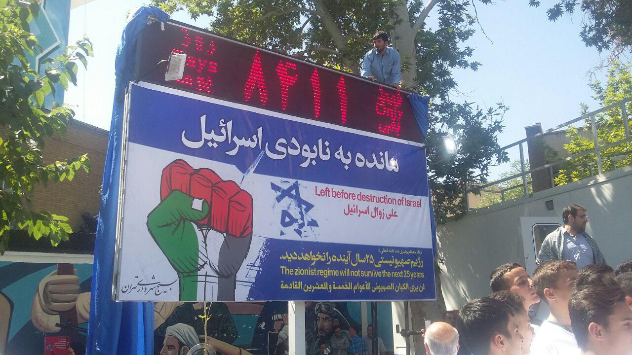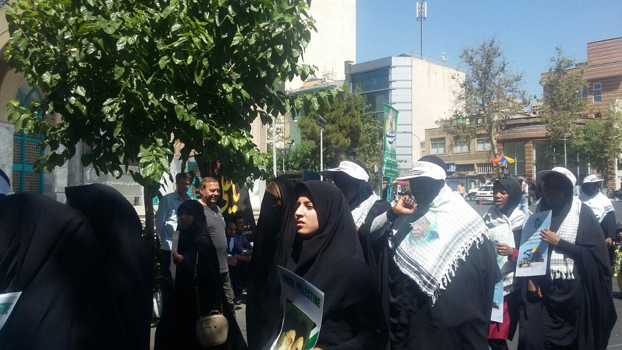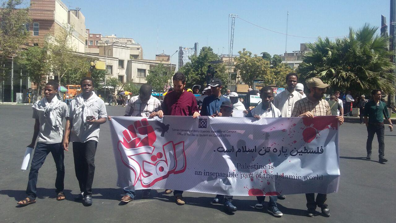 گزارشهای میدانی خبرنگاران خبرگزاری صدا و سیما، از مسیرهای ده گانه راهپیمایی روز جهانی قدس در تهران حاکی است که برغم گرمای هوا، مردم روزه دار از لحظات نخست با حضور در مسیرهای مختلف به صورت انفرادی، خانوادگی و دسته جمعی با در دست داشتن پلاکارد و کاغذ نوشته با مضامین ضد صهیونسیتی و سر دادن شعارهای مرگ بر اسرائیل، مرگ بر آمریکا، مرگ بر آل سعود و مرگ بر داعش در حال حرکت به سمت دانشگاه تهران هستند.