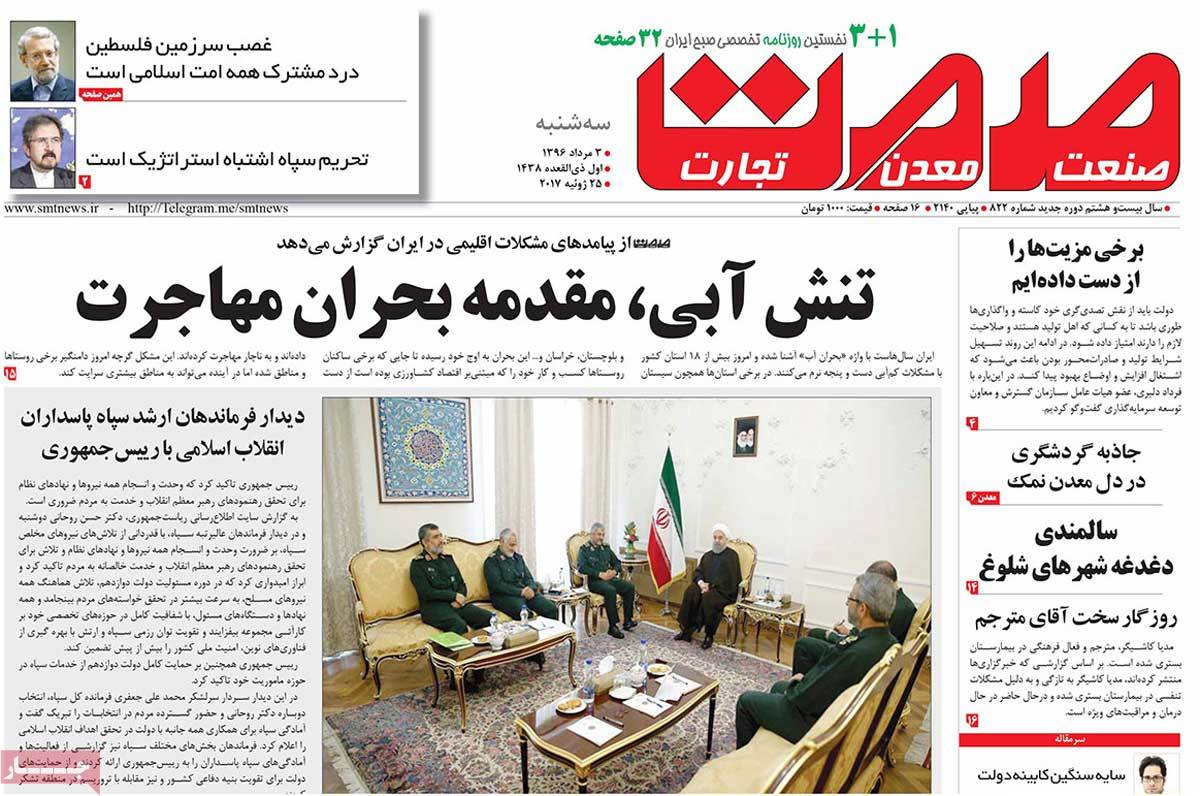در پیشخوان امروز ، صفحه نخست روزنامه های اقتصادی سه شنبه 3 مرداد 1396 را مشاهده می کنید.