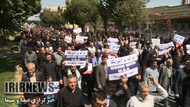 در این تظاهرات ضد آمریکایی مردم حمایت خود را از رهبر معظم انقلاب(مدظله العالی) و نظام مقدس جمهوری اسلامی ایران اعلام کردند.