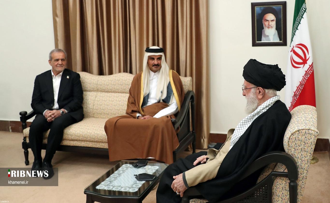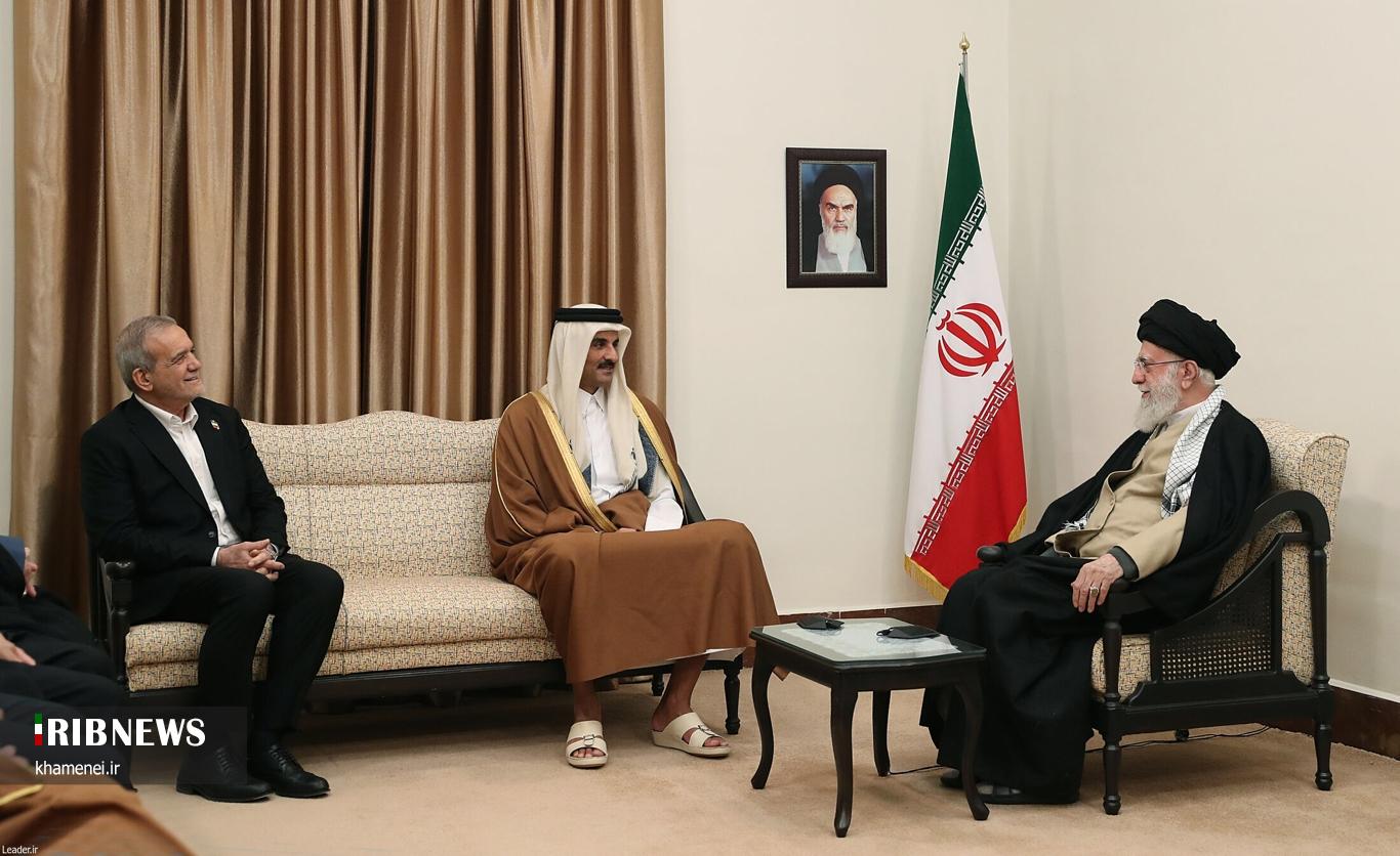 شیخ تمیم بن حمد آل ثانی امیر قطر و هیئت همراه عصر امروز چهارشنبه ۱ اسفند ۱۴۰۳ با حضرت آیتالله خامنهای رهبر معظم انقلاب اسلامی دیدار کردند.