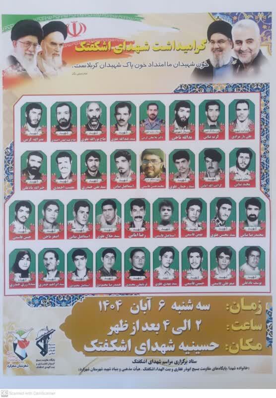 آیین گرامیداشت ۳۴ شهید اشکفتک برگزار میشود.
